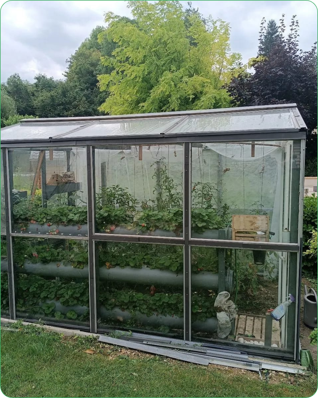 Des objets design et modulaires ( serres en Vélux de réemploi, tables, assises…), conçus en interne ou avec des artisans partenaires